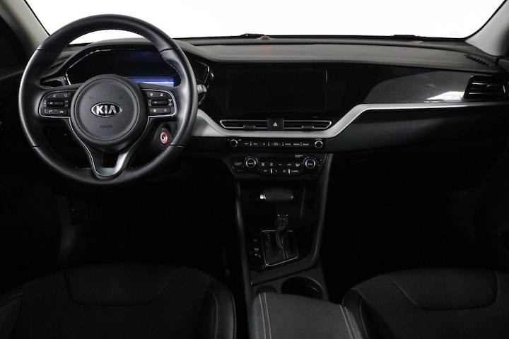 Deze Niro is niet alleen efficiënt, maar ook rijk uitgerust. De 16 inch lichtmetalen velgen met all-season banden zorgen ervoor dat u het hele jaar door veilig en comfortabel onderweg bent, zonder gedoe met zomer- en winterbanden. Samen met de halflederen bekleding en moderne LED-dagrijverlichting geeft dat de auto een luxe en verzorgde uitstraling. Binnenin geniet u van extra comfort dankzij de in hoogte verstelbare passagiersstoel en een in delen neerklapbare achterbank, ideaal voor extra bagage of flexibiliteit.
