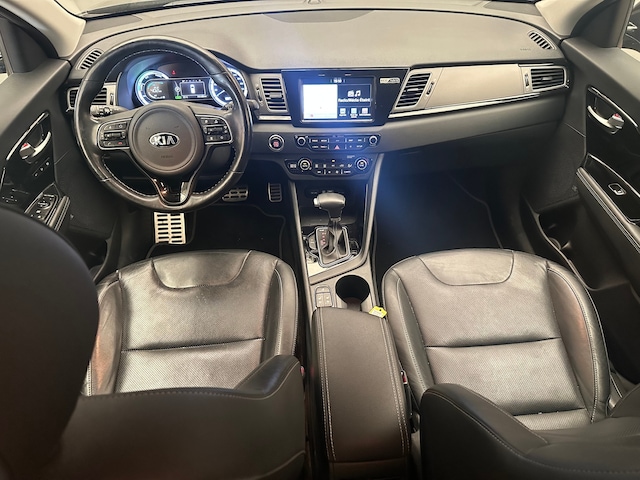 Niet voor niets kiezen steeds meer gebruikers voor een Koreaanse auto. Een uitstekende prijs-kwaliteitverhouding en een lage afschrijving helpen daar absoluut bij. Deze hybride Kia Niro gaat slim om met energie. Door rijden en remmen wordt de accu van de elektromotor opgeladen, die de brandstofmotor en handje helpt of zelfs de aandrijving overneemt. De auto is uitgerust met stijlvolle, lederen bekleding. Op koude en donkere dagen zijn de verwarmbare voorstoelen een uitkomst. Bij deze Kia Niro is aan alles gedacht, tot en met een verwarmd stuurwiel aan toe. Ook 16 inch lichtmetalen velgen, LED-dagrijverlichting, extra getint glas, in delen neerklapbare achterbank en LED-achterlichten horen tot de voorzieningen op deze auto. Bij het inparkeren laat de achteruitrijcamera precies zien hoeveel meter... decimeter... centimeter ruimte er nog is! Met adaptive cruise control houdt de auto zelfstandig afstand tot uw voorligger. Een veiligheidsverhogende optie waarmee u comfortabel onderweg bent. Het full map navigatiesysteem geeft duidelijke instructies. Zo komt u veilig en vlot aan waar u moet zijn. Tot de standaard uitrusting van deze auto hoort ook electronic climate control. Niet meer op de tast een andere zender zoeken of het volume aanpassen. En al helemaal niet met uw ogen van de weg af raken. De audiobediening op het stuur zorgt dat u alles van onder uw vingers regelt. En dan is deze auto ook nog eens voorzien van DAB ontvangst, regensensor, keyless entry en automatisch dimmende binnenspiegel. Elektronische veiligheidsvoorzieningen helpen u onderweg om de situatie op de weg te beoordelen. Deze systemen waarschuwen u als er een riskante situatie ontstaat, en kunnen in bepaalde gevallen ook zelf ingrijpen. Ongemerkt buiten de rijstrook raken? Nee hoor, het Lane-keeping systeem waarschuwt en corrigeert. De Brake Assist vergroot de veiligheid door bij een noodsituatie extra power te leveren op het remsysteem. Bovenop deze veiligheidsfeatures heeft deze Kia bovendien hill hold functie en bandenspanningcontrolesysteem. We laten u graag een proefrit maken, neemt u contact met ons op?