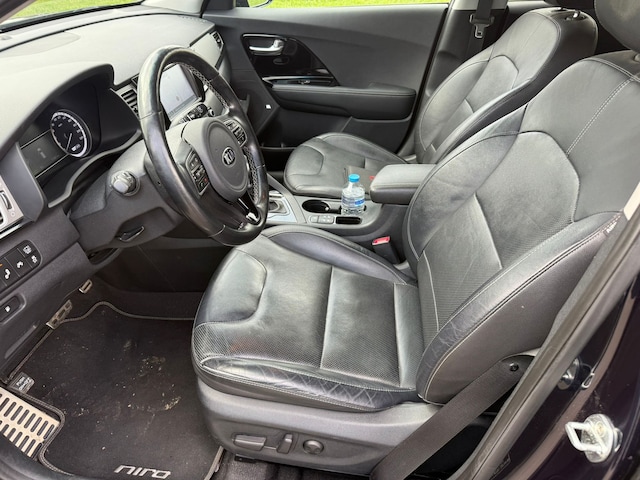 Niet voor niets kiezen steeds meer gebruikers voor een Koreaanse auto. Een uitstekende prijs-kwaliteitverhouding en een lage afschrijving helpen daar absoluut bij. Deze hybride Kia Niro gaat slim om met energie. Door rijden en remmen wordt de accu van de elektromotor opgeladen, die de brandstofmotor en handje helpt of zelfs de aandrijving overneemt. De auto is uitgerust met stijlvolle, lederen bekleding. Op koude en donkere dagen zijn de verwarmbare voorstoelen een uitkomst. Bij deze Kia Niro is aan alles gedacht, tot en met een verwarmd stuurwiel aan toe. Ook 16 inch lichtmetalen velgen, LED-dagrijverlichting, extra getint glas, in delen neerklapbare achterbank en LED-achterlichten horen tot de voorzieningen op deze auto. Bij het inparkeren laat de achteruitrijcamera precies zien hoeveel meter... decimeter... centimeter ruimte er nog is! Met adaptive cruise control houdt de auto zelfstandig afstand tot uw voorligger. Een veiligheidsverhogende optie waarmee u comfortabel onderweg bent. Het full map navigatiesysteem geeft duidelijke instructies. Zo komt u veilig en vlot aan waar u moet zijn. Tot de standaard uitrusting van deze auto hoort ook electronic climate control. Niet meer op de tast een andere zender zoeken of het volume aanpassen. En al helemaal niet met uw ogen van de weg af raken. De audiobediening op het stuur zorgt dat u alles van onder uw vingers regelt. En dan is deze auto ook nog eens voorzien van DAB ontvangst, regensensor, keyless entry en automatisch dimmende binnenspiegel. Elektronische veiligheidsvoorzieningen helpen u onderweg om de situatie op de weg te beoordelen. Deze systemen waarschuwen u als er een riskante situatie ontstaat, en kunnen in bepaalde gevallen ook zelf ingrijpen. Ongemerkt buiten de rijstrook raken? Nee hoor, het Lane-keeping systeem waarschuwt en corrigeert. De Brake Assist vergroot de veiligheid door bij een noodsituatie extra power te leveren op het remsysteem. Bovenop deze veiligheidsfeatures heeft deze Kia bovendien hill hold functie en bandenspanningcontrolesysteem. We laten u graag een proefrit maken, neemt u contact met ons op?