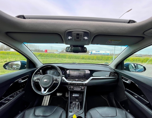 Deze Niro is werkelijk vol in de opties en voorzien van onder andere adaptieve cruise control, automatische airconditioning, keyless entry & start, een elektrisch glazen schuif-/kanteldak en een elektrisch verstelbare bestuurdersstoel met geheugen. Het interieur biedt maximaal comfort dankzij lederen bekleding, stoelverwarming voor én achter, stoelventilatie voor en een verwarmbaar stuurwiel.