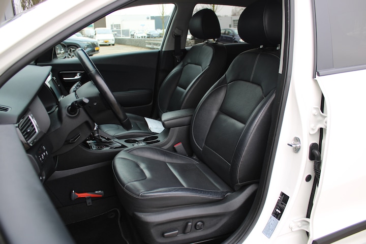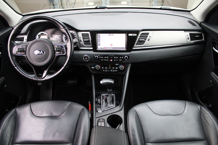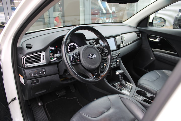 Kia is uitermate geliefd vanwege het brede aanbod van modellen in verschillende prijsklassen. Maar ook vanwege het design en de gunstige prijs. Movement that inspires, zeggen ze. Een elektromotor of verbrandingsmotor? Kiezen hoeft niet, want deze auto is hybride. Slim, zuinig en voordelig! De lederen bekleding geeft het interieur een rijke en luxe uitstraling. Hoe koud het buiten ook is, het verwarmbare stuurwiel en de verwarmbare voorstoelen brengen uw handen, vingers en lichaam snel weer op temperatuur. De uitmonstering van deze auto wordt gecompleteerd door onder meer 18 inch lichtmetalen velgen, LED koplampen, extra getint glas, in delen neerklapbare achterbank en LED-achterlichten. Met de achteruitrijcamera ziet u precies wat er achter de auto gebeurt. Adaptive cruise control is een comfortabele en veilige optie. Het systeem reguleert de snelheid en houdt automatisch afstand tot uw voorligger. Formidabele geluidskwaliteit en een compleet spectrum van klank wordt geleverd door het high performance audiosysteem. De draadloze oplaadmogelijkheid voor telefoons voldoet aan de universele Qi-standaard. Elke geschikte smartphone is onderweg zonder snoeren en stekkers op te laden. Met de electronic climate control selecteert u de gewenste temperatuur. Het systeem doet de rest. De uitrusting van deze auto is met full map navigatiesysteem, DAB ontvangst, regensensor, keyless entry en automatisch dimmende binnenspiegel behoorlijk compleet. In de Kia Niro heeft uw veiligheid en die van uw omgeving prioriteit. Het Lane-keeping systeem zorgt voor een automatisch constante positie binnen de rijstrook. Afdwalen is uitgesloten. Een kortere remweg verkleint de kans op een aanrijding. Brake assist helpt actief mee tijdens een noodstop. Ook helpen het dodehoekdetectie, hill hold functie en bandenspanningcontrolesysteem, uw rit tot een veilige rit te maken. Heeft u serieus interesse in deze auto? Bel of mail ons dan voor een afspraak.