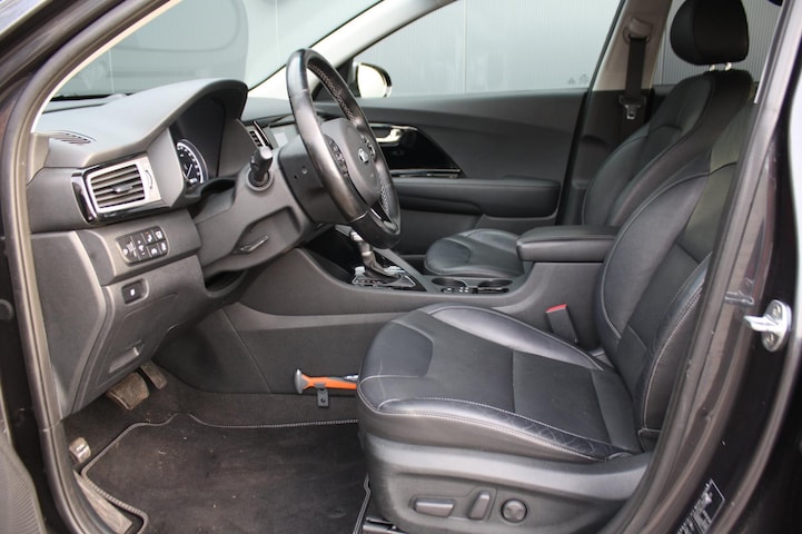 Zakelijk rijden wordt een stuk prettiger met deze Kia Niro. De aandrijving van deze Kia wordt verzorgd door een viercilinder motor en een automatische transmissie. Ook een fijne dosis klasse is bijgeleverd, met het lederen interieur. Voorzien van zowel stoelverwarming, verwarmbare achterbank alsook een verwarmbaar stuur, zorgt dit voertuig voor uitstekend comfort tijdens koude dagen. Dankzij de xenonverlichting profiteert u in het donker van een krachtige en heldere lichtbundel. Ook is de auto voorzien van: 18 inch lichtmetalen velgen, extra getint glas, in delen neerklapbare achterbank en LED-achterlichten.