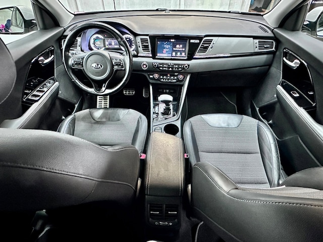 Alle technologie in de Kia Niro is er op gericht om uw rit veilig en gemakkelijk te laten verlopen. Bij de complete uitrusting van deze auto hoort ook stoelverwarming. Het verwarmbare stuurwiel is een teken van ultieme luxe. Deze voorziening is een topklasse auto waardig. De uitmonstering van deze auto wordt gecompleteerd door onder meer 18 inch lichtmetalen velgen, halflederen bekleding, LED-dagrijverlichting, extra getint glas, in delen neerklapbare achterbank en LED-achterlichten.