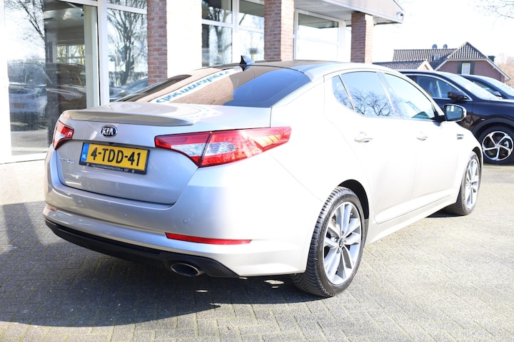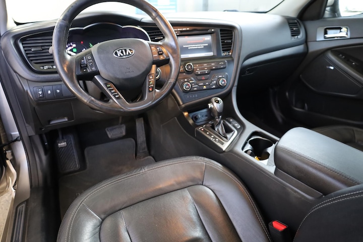 Modern design en bijzondere techniek bepalen de kwaliteiten van de hybride Kia Optima. Deze auto is uit 2013, hij heeft 165500 kilometer gelopen. Zuinig, slim en milieuverantwoord! Deze hybride auto combineert een verbrandingsmotor en een elektromotor: voordelig rijden en gunstig in onderhoud. Elke rit in deze Kia Optima heeft een tikje meer, dankzij het lederen interieur. De R in de maand? Dan is het tijd voor de luxe van de meegeleverde stoelverwarming! Onderweg heeft u extra veel te zien dankzij het glazen panoramadak. De gasontladingslampen van de xenonverlichting zorgen voor een krachtige en heldere lichtbundel. Tot de uitrusting behoren ook 18 inch lichtmetalen velgen en adaptieve verlichting.