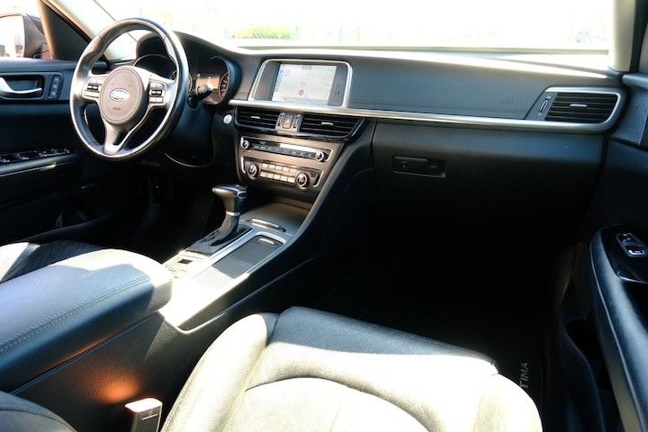 Pragmatisch en veilig als deze auto is, beschikt hij over diverse veiligheidssystemen. Deze Kia Optima is ook behulpzaam als het gaat om een rechte koers. Het Lane-keeping systeem signaleert en corrigeert als u onbedoeld de rijstrooklijnen dreigt te overschrijden. Een aanrijding met een andere weggebruiker die zich in uw dode hoek bevindt, heeft meestal ernstige gevolgen, zeker bij kwetsbare verkeersdeelnemers. De actieve dodehoekdetectie helpt dit risico sterk te verkleinen. Deze Kia Optima is voorzien van Brake Assist, die extra remkracht geeft bij een noodstop.