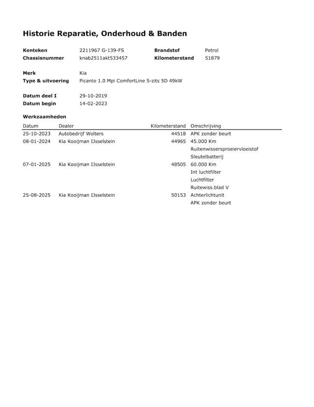 - Onderhoudshistorie aanwezig: Ja