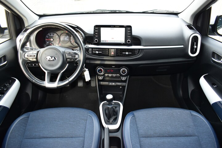Kia Picanto 1.0 CVVT Design Edition voorzien van o.a. airconditioning, cruise control, touchscreen infotainmentsysteem met Bluetooth, multifunctioneel stuurwiel, lichtmetalen velgen, parkeersensoren achter, elektrische ramen voor, elektrisch verstelbare buitenspiegels, centrale deurvergrendeling met afstandsbediening en LED-dagrijverlichting.