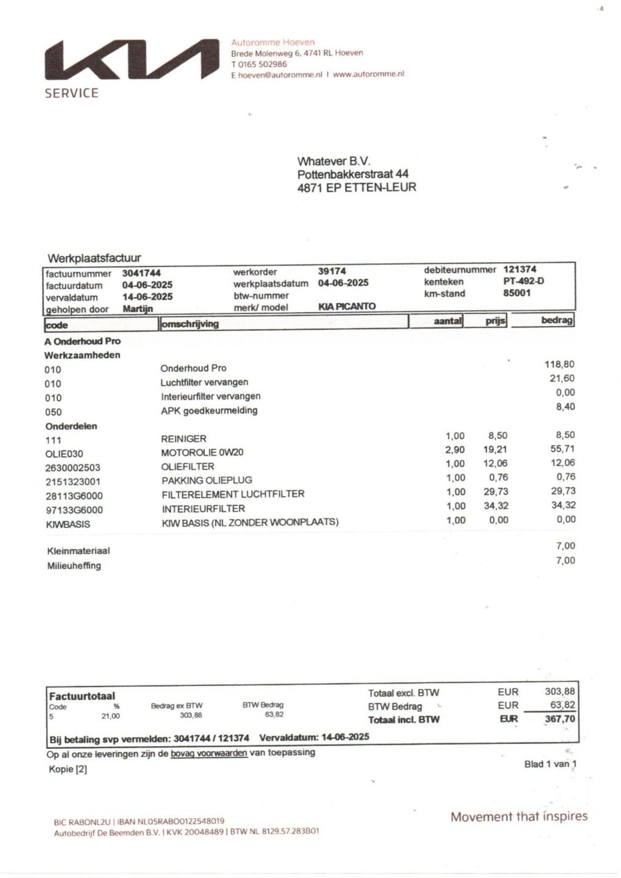 | BTW auto | Ja, incl. BTW |