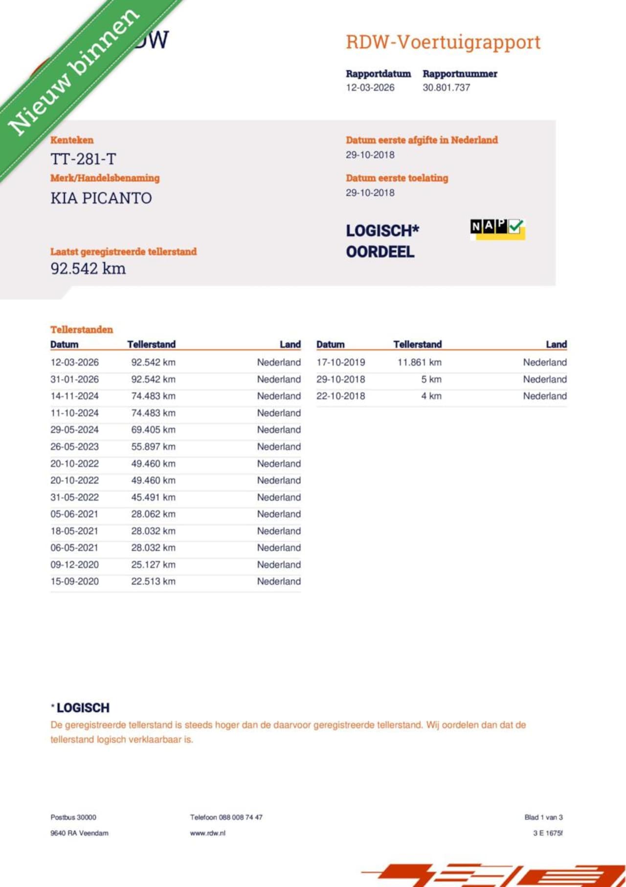 | Kilometerstand | 92.542 km |