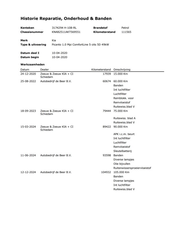- Onderhoudshistorie aanwezig: Ja