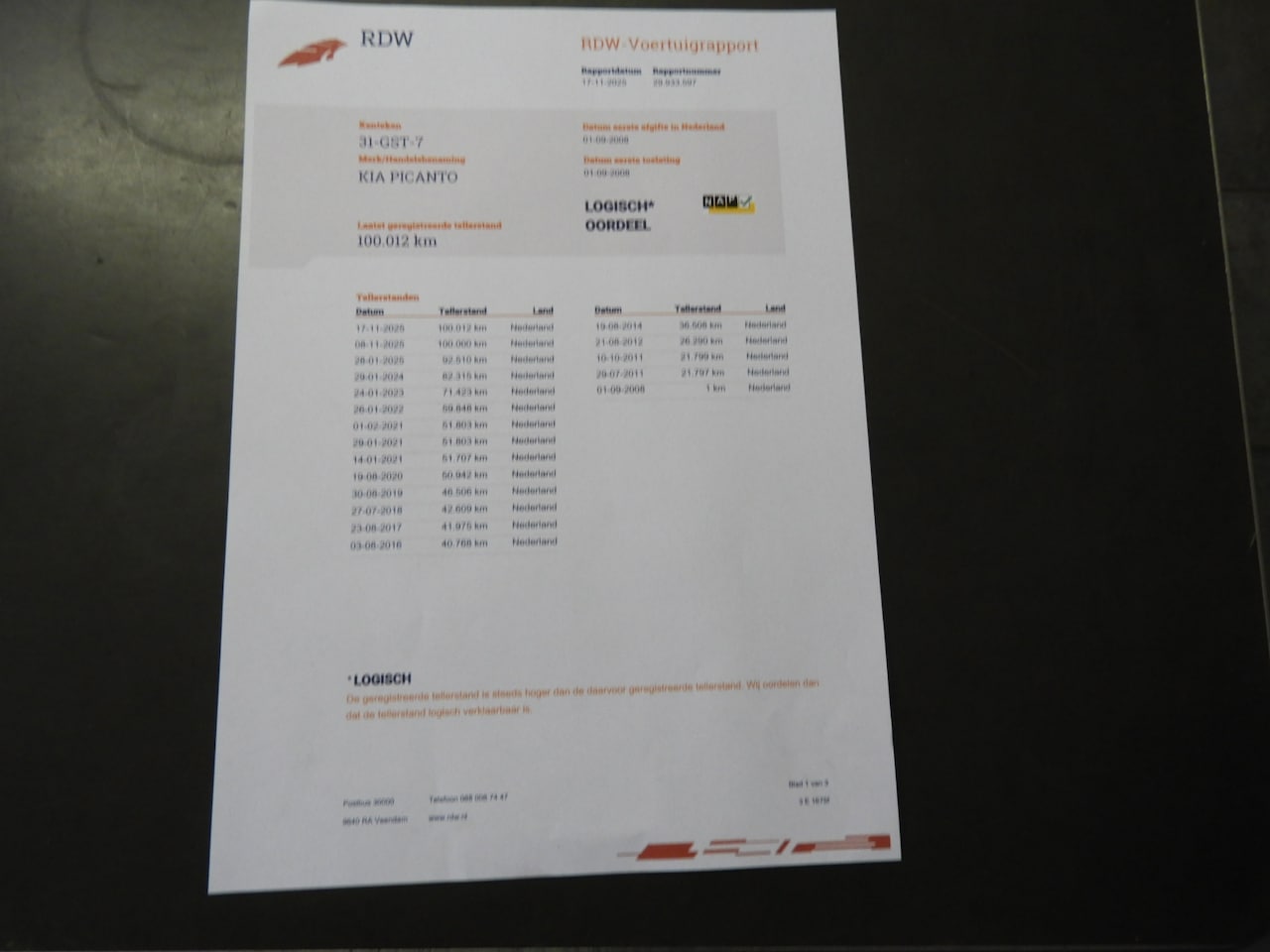 | Kilometerstand | 100.012 km |