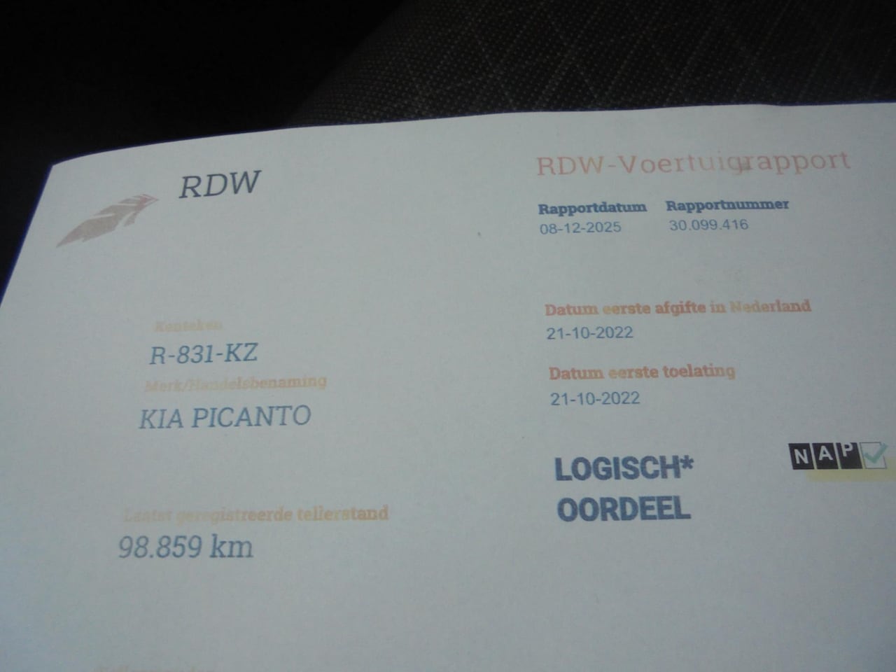 picanto 1.0 benzine airco lmv camera 98.000km eerste eigenaar