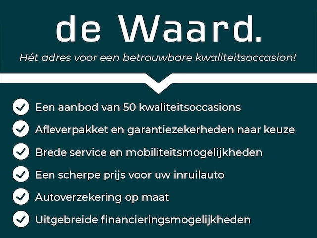 Standaard leveren wij onze kwaliteitsoccasions inclusief het ‘De Waard Afleverpakket’, waarin alle onvermijdelijke kosten zijn inbegrepen, zoals kenteken tenaamstelling en, indien van toepassing, een RDW-vrijwaring voor uw inruilauto. Om uw 'nieuwe' auto in de best mogelijke staat af te leveren, adviseren wij u te kiezen voor een upgrade. Voor slechts € 1.099,- bieden wij het ‘De Waard Occasion Comfort Afleverpakket’ aan, waarbij alles tot in de puntjes wordt verzorgd en u kunt rekenen op uitgebreide garantiezekerheden. Voor een meer complete ervaring kunt u, tegen een meerprijs van € 300,-, ook het ‘De Waard Occasion Excellent Afleverpakket’ kiezen.