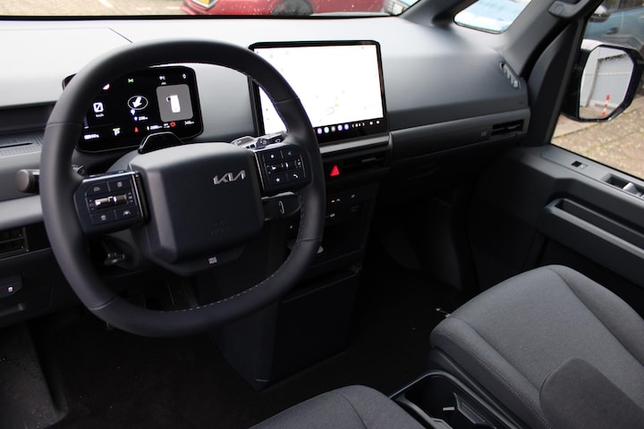 Het eigentijdse interieur wordt natuurlijk helemaal volmaakt met het digitale dashboard. Het gebruik van de 360 graden camera op deze auto helpt je bij het navigeren door lastige rijbanen en het drukke stadsverkeer. Als je de adaptive cruise control inschakelt, regelt de auto zelf de snelheid en de afstand tot de auto voor je. Deze Kia PV5 is 'connected'. Belangrijke functies worden permanent gemeten en zijn uit te lezen via een speciale app, ook op afstand. De snelste of zuinigste weg? Het full map navigatiesysteem aan boord wijst de juiste weg! Deze auto is voorzien van electronic climate control, draadloos opladen, regensensor, keyless entry en centrale deurvergrendeling met afstandsbediening.