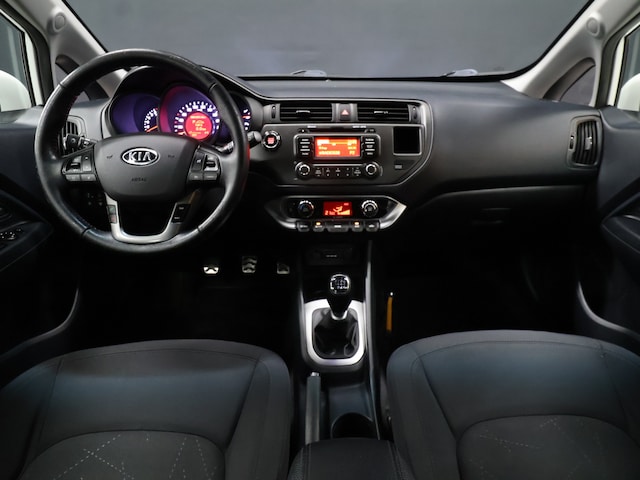 Een optie die de veiligheid verhoogt, is de bediening vanaf het stuur van het audiosysteem. Electronic climate control verwarmt of koelt het interieur met een druk op de knop. Parkeerplekken worden er niet ruimer op. Maar met de aanwezige parkeersensoren krijgt u deze Kia Rio zonder problemen op z'n plaats. De automatisch inschakelbare verlichting en regensensor zorgen dat onderweg automatisch de verlichting en de ruitenwissers worden ingeschakeld. Daarmee nemen ze u veel werk uit handen. Cruise control is aanwezig; prettig voor de lange einden. En dan is deze auto ook nog eens voorzien van keyless entry, centrale deurvergrendeling met afstandsbediening, boordcomputer en verstelbaar stuur.