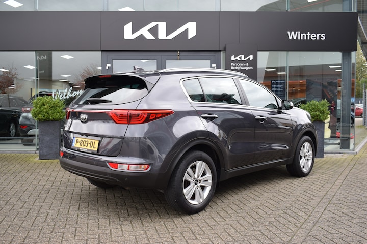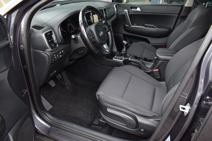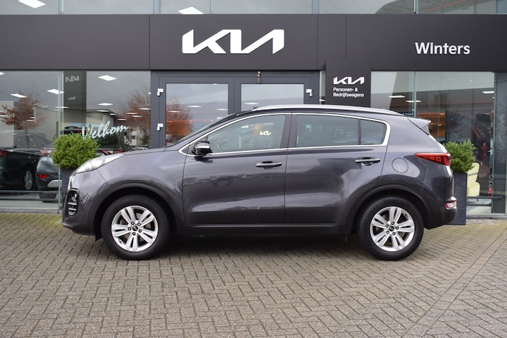 Ruime, sportieve en complete Sportage 1.6i DynamicLine o.a. met Hoge instap, ECC-Airco, Cruise control, Speed Limiter, Navigatie, Achteruitrijcamera, Bluetooth, Armsteunen, 6-bak, Electrisch inklapbare buitenspiegels, Hoogte verstelbare stoelen + stuur, StoelVerwarming, Stuurverwarming, Privacy Glas,  Deels neerklapbare achterbank, Centrale vergrendeling met afstandbediening, Roofrails, Mistlampen, 17" LMV, Parkeersensoren, Dodehoekdetectie, Dealeronderhouden en Tot 10Jr. Kia-Garantie t/m 8-3-2028. Verkoopprijs € 18.385,- incl. Basis Service-pakket. Rijklaarprijs € 18.980,- incl. FullService-afleverpakket van € 595,-.