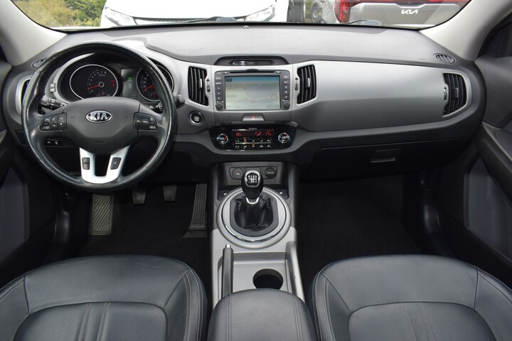 Kia Sportage 1.6 GDI X-treme ExecutiveLine (2016) uitgerust met o.a. navigatiesysteem, achteruitrijcamera, parkeersensoren voor en achter, climate control, cruise control, stoelverwarming, lederen bekleding, panoramadak, keyless entry/start, lichtmetalen velgen, xenon-/LED-verlichting, multifunctioneel stuurwiel, elektrische ramen en spiegels, plus diverse veiligheidssystemen zoals rijstrookwaarschuwing en hill hold control.