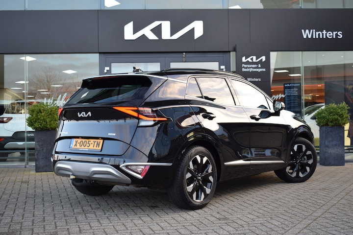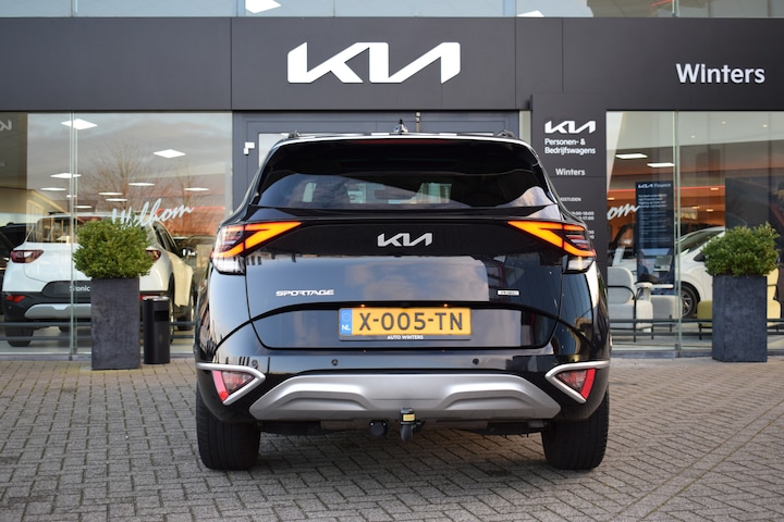 Ruime, comfortabele en complete Kia Sportage 1.6 T-GDi Hybrid DynamicPlusLine. O.a. voorzien van Hoge instap, Trekhaak, Automaat, ECC-Airco, Cruise Control Adaptief, 12,3" Navigatie, Achteruitrijcamera, Bluetooth, Stof/Leder, Stoelverwarming, Stuurverwarming, Electrisch verstelbare voorstoelen, Electrisch Panorama Schuif/kantel-dak, Dodehoekherkenning, Kruisend verkeerassistentie achter, Privacy Glass, Keyless Entry met start/stop-button, Slimme Automatische achterklep, 18" LMV, Parkeersensoren voor + achter en Tot 10Jr. Kia-Garantie t/m 01-02-2034. Verkoopprijs € 34.595,- incl. Basis Service-pakket. Rijklaarprijs € 35.190,- incl. FullService-afleverpakket van € 595,-.