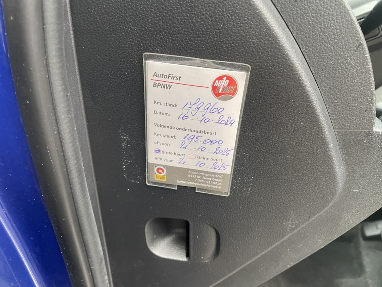 | APK | Bij aflevering |
