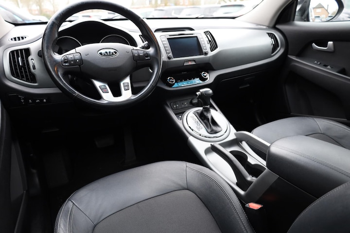 De Kia Sportage is een veelzijdige zakenauto die comfort, veiligheid en efficiëntie biedt en zorgvuldig is onderhouden sinds zijn bouwjaar in 2015 met 97210 kilometer op de teller. De aandrijving van deze Kia wordt verzorgd door een viercilinder benzinemotor en een automatische transmissie. Deze Kia Sportage is luxe afgewerkt. Kijk maar naar het lederen interieur! Ga samen met uw bijrijder lekker zitten in de verwarmbare voorstoelen. Het interieur lijkt groter en ruimtelijker dankzij het elektrisch bedienbare glazen panoramadak. Xenonverlichting staat borg voor helderwit licht en een krachtige lichtbundel. Ook 18 inch lichtmetalen velgen, LED-dagrijverlichting, extra getint glas en verstelbare lendensteunen zijn aan boord.
