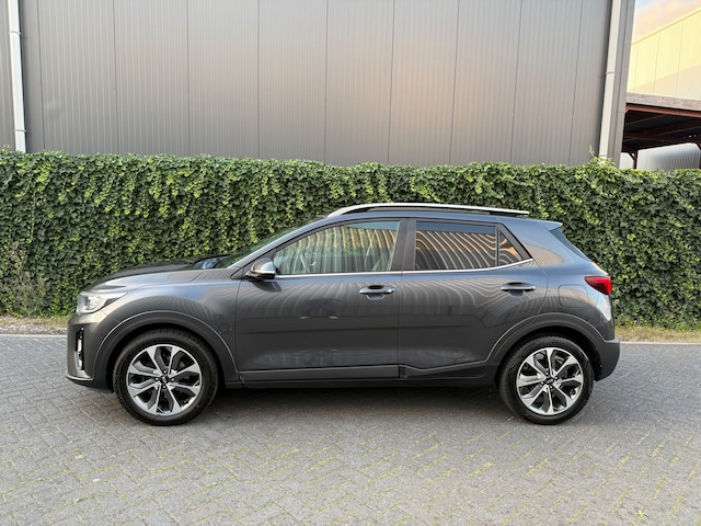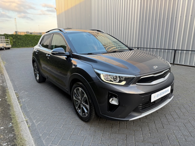 Nette KIA Stonic, het gaat hier om de 120pk variant, voorzien van het Executive Line pakket, chique kleurstelling grijs metallic exterieur met zwartlederen interieur.