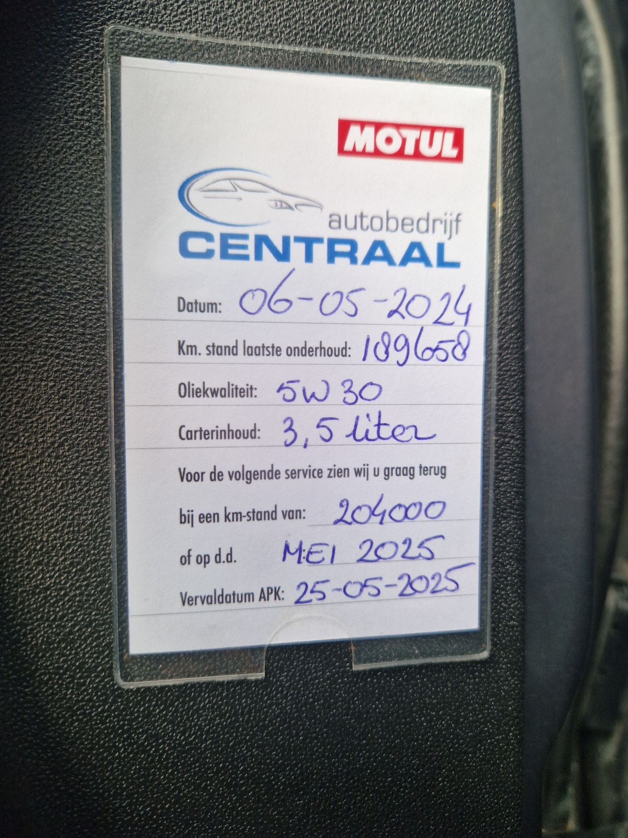 | APK | Bij aflevering |