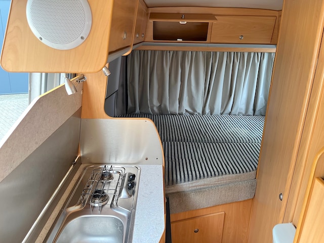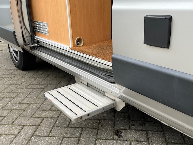 De Knaus heeft een stahoogte van 1.85 m, 4 gordel-zitplaatsen en 2 draaistoelen. De Camper is voorzien van airconditioning, cruise control en zeldzaam is de soepele 2.8 liter motor met AUTOMAAT! Dus lekker relaxed rijden. Ook een toiletruimte met fonteintje is aanwezig, die tevens als douchecabine is te gebruiken door een slim, rondom te sluiten douchegordijn. De keuken zit handig in het midden, met kookplaat, wasbak, koelkast en besteklade. Erg handig is trouwens ook het elektrisch in- en uitschuifbare opstapje bij de schuifdeur.