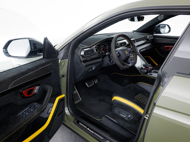 • Rims Pelope 23'' with titanium wheel bolts - Shiny Black • Rear Lamborghini Logo in High Gloss Black • Optional stitching • Rear Seats Heated • Sport steering wheel in full Alcantara with Dark Chrome Bezel and Red Marker - heated • Red painted interior door handles • Bang & Olufsen Advanced 3D Audio System • Ambient Light Package • Lamborghini Connect Vehicle Tracking System • Maintenance Package 5 years Verkoopprijs • Yellow caliper • Bonnet in visible carbon fiber Shiny • Full electric front seats with ventilation and massage • Upper Interior Carbon Package - Shiny • Floor mats with leather piping and double stitching • Stitching on steering wheel • Premium air quality system (with air ionizer & aromatization) • Garage Door Opener • Heated and heat-reflective windscreen • Electric Panorama Roof • Full exterior carbon fiber package - Shiny • Giallo Taurus • Kick-plates in carbon fiber • Dark Package on Alcantara • Full ADAS package • Wiper blades with integrated nozzles • Sunshine Package • Privacy glasses, acoustic and heat-insulated glasses