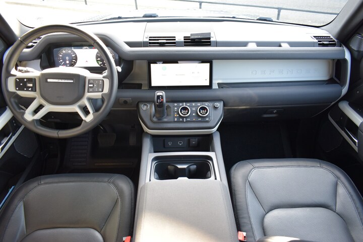 Land Rover Defender 110 2.0 P400e 110 XS Edition met plug-in hybride aandrijflijn. Uitgerust met vierwielaandrijving en geavanceerde terreintechnologie. XS Edition met hoogwaardige afwerking, inclusief lederen interieur, elektrisch verstelbare en verwarmde stoelen en een uitgebreid infotainmentsysteem met groot touchscreen en navigatie. Voorzien van luchtvering, 360° camera, rijhulpsystemen zoals adaptieve cruise control, dodehoekdetectie en rijstrookassistentie. Daarnaast uitgerust met panoramadak en premium audio.