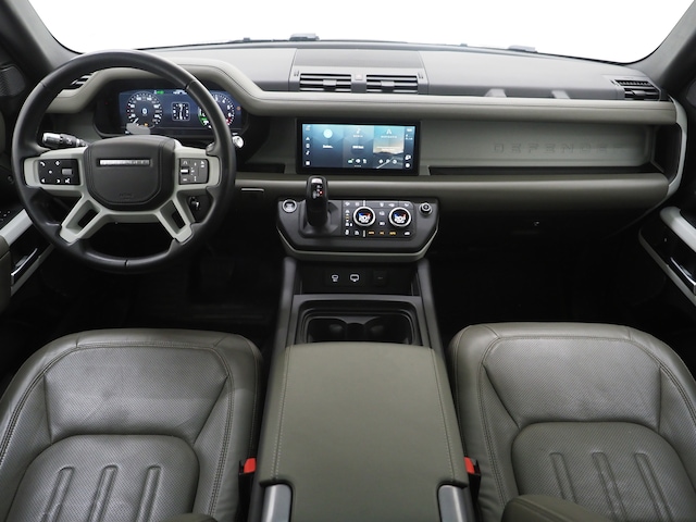 Deze Land Rover Defender 110 2.0 P400e 110 Black Pack Plug-in Hybride van bouwjaar 2021 met 57.000km verkeert in zeer nette staat en is voorzien van vele luxe opties waaronder: Groot Glazen Panoramadak, Luchtvering, Meridian Premium Audio, Keyless Entry & GO, Adaptive Cruise, Stoelverwarming/Koeling, Virtual Display, Dodehoekdetectie, Achterbank verwarming, Elektrisch Verstelbare Stoelen met Memory Functie, Een Origineel Land Rover infotainment systeem met Apple Carplay & Android Auto, 360 & Achteruitrijcamera, DAB Radio, Climate Control, Elektrische kofferklep, Lederen Comfortstoelen, LED Verlichting, en nog veel meer.