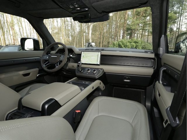 Af fabriek is deze Defender bovendien al zeer compleet uitgerust met onder andere een panoramisch schuif kanteldak, Tow Pack met elektrisch wegklapbare trekhaak en Tow Assist, Virtual Driver Display, 11.4 inch Pivi Pro touchscreen, Meridian premium audiosysteem, adaptieve cruise control met Stop & Go, verwarmde voorstoelen, stuurwielverwarming, Auto Terrain Response 2, elektrisch verstelbare stoelen met memory, Premium LED koplampen, Keyless Entry met Approach Lock en Unlock, wireless charging, wireless Apple CarPlay, 360 graden surround camera en een harddisk navigatiesysteem.