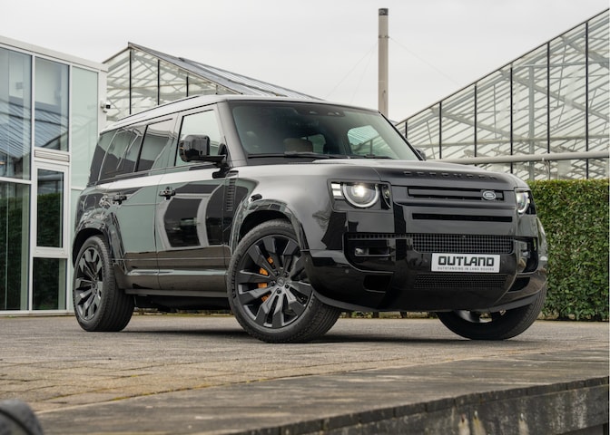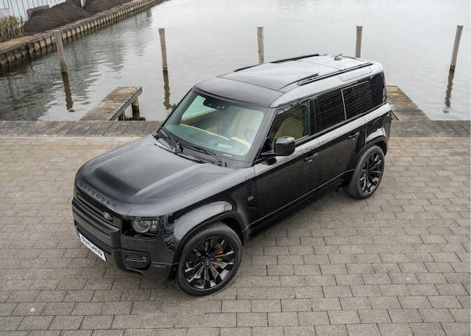 Companycar Land Rover Duitsland, Defender 110 P300e in prachtig complete X-Dynamic HSE uitvoering. De Defender heeft de fabriek verlaten in de sportieve en tijdloze kleur Santorini Black Metallic, het interieur is voorzien van Windsor leder in de kleur Ebony.