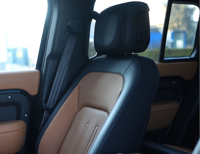 De Defender rijdt verrassend soepel op de weg, mede dankzij de luchtvering en continu variabele dempers. Off‑road blijft hij natuurlijk onverstoorbaar: zand, modder of een slecht begaanbaar bospad, deze P400e X blijft stabiel en comfortabel. De plug‑in hybride aandrijflijn levert maar liefst 404 pk, waardoor het onderstel moeiteloos wordt benut, ongeacht het terrein. Het maakt hem tot een auto die zich even goed thuis voelt in de stad als in het buitengebied.