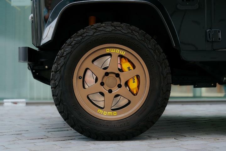 Optisch is er op het eerste oog niet veel anders aan de buitenkant. Verbreedde spatbordranden om de bredere spoorbreedte op te vangen. Custom Momo Heritage wielen in het brons laten maken in Italië, specifiek voor deze auto. Panorama glas op de achterhoeken voor een moderne uitstraling.