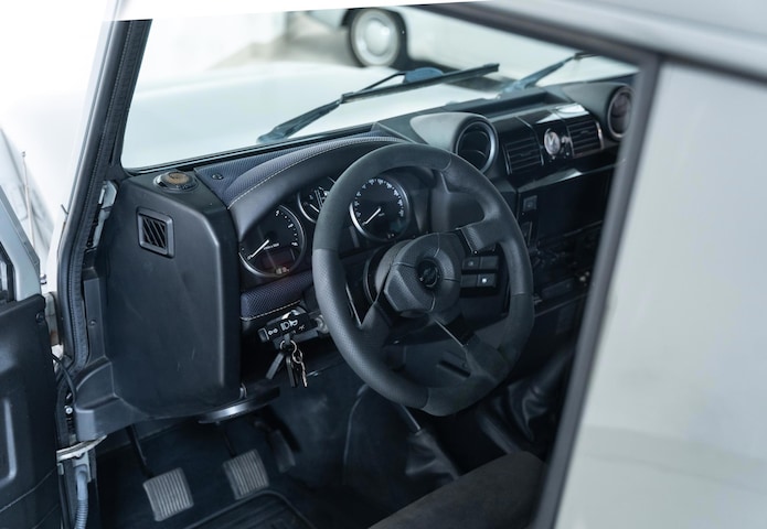 This particular example is truly special. The previous owner spared no expense in upgrading this Defender. Equipped with beefy BF Goodrich tires and a modified suspension, it features Bilstein shock absorbers that easily absorb the bumps. The AP disc brakes ensure you come to a halt in the blink of an eye, while the Lazer Elite LED lights give you optimal visibility in any situation. Upon entering, you’ll find yourself seated in luxurious Recaro seats, surrounded by a refined interior. The sports steering wheel offers maximum grip, ensuring a comfortable cruise.