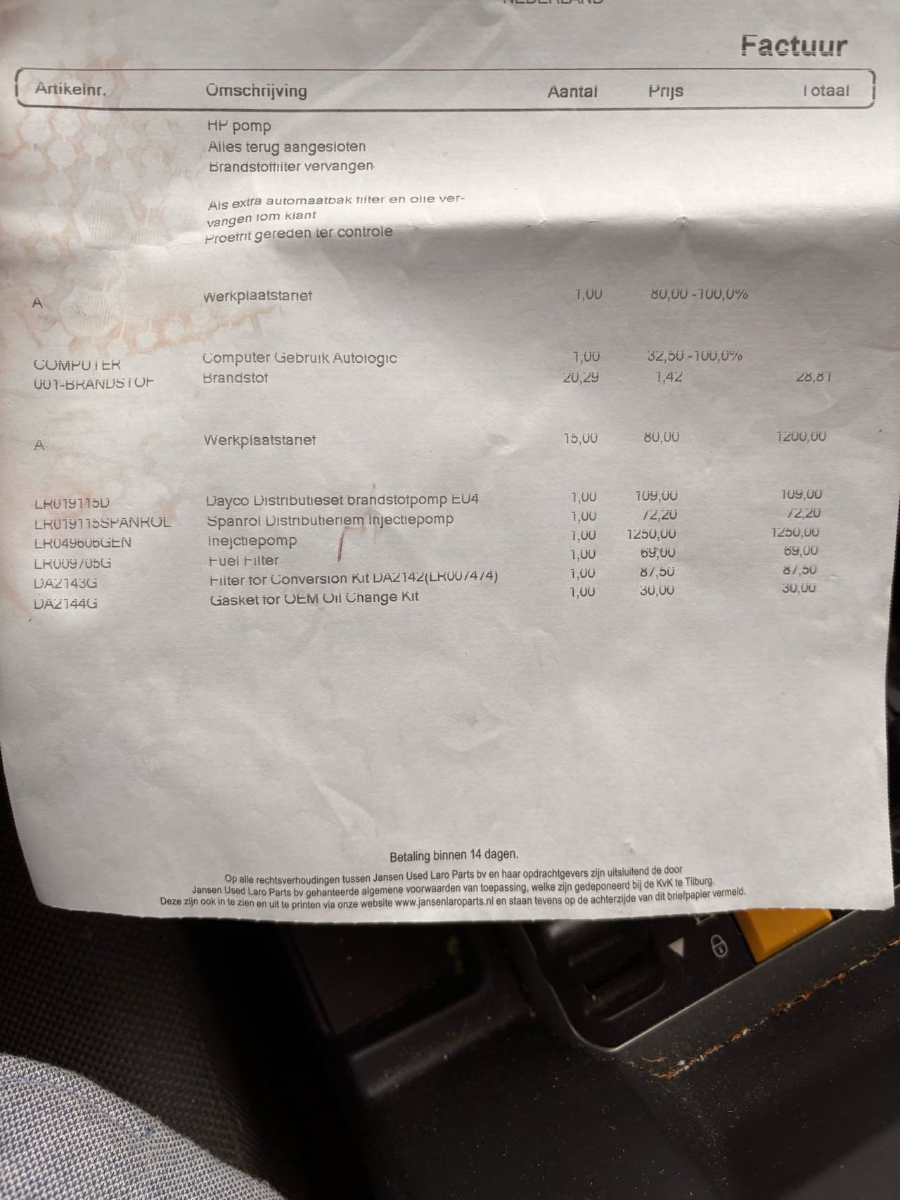 | APK | Bij aflevering |