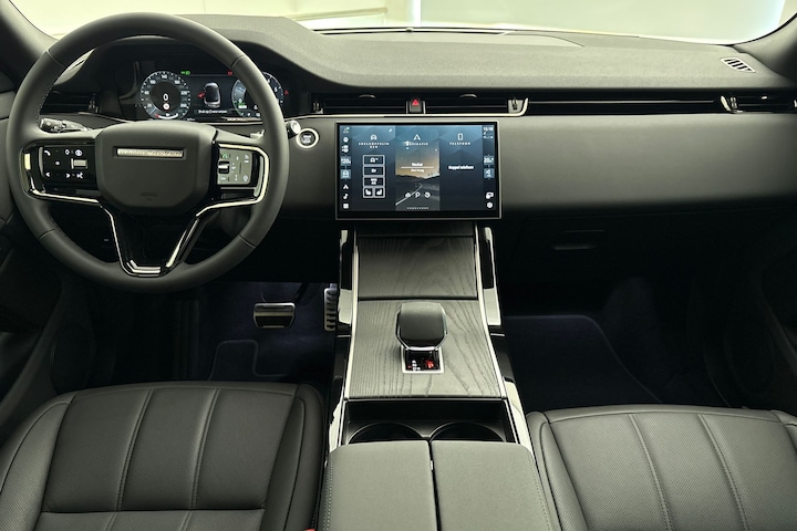 Prachtig en compleet uitgevoerde Range Rover Evoque P270e in Dynamic SE-uitvoering. De Ostuni White Metallic lakkleur contrasteert fraai met de zwarte exterieuraccenten en zwart dak, waarbij ook het privacyglas opvalt. Deze Evoque is nieuw in Nederland geleverd, en komt met tal van opties en extra’s. Denk hierbij aan 20 inch lichtmetalen wielen, glazen panoramadak met schuif-/kanteldeel, volledig lederen bekleding inclusief stoelverwarming voor- en achter, verwarmde voorruit en verwarmbare stuurwielrand, Keyless Entry en elektrische achterklepbediening.