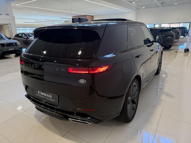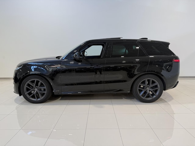 New Range Rover Sport PHEV in de kleur Santorini Black Metallic met Zwart Lederen bekleding.