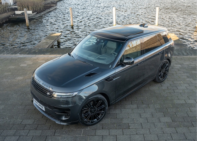 Om het geheel volledig af te maken, hebben wij deze Range Rover Sport zelf voorzien van een aantal zorgvuldig gekozen, hoogwaardige accenten. De uitlaateindstukken hebben wij uitgevoerd in zwart, waardoor ze naadloos aansluiten bij het Black Exterior Pack en de sportieve uitstraling verder versterken. Tevens hebben wij het standaard groen/zilveren Land Rover-embleem in de grille vervangen door een zwart/zilveren uitvoering, wat het front een rustiger en meer eigentijds karakter geeft.