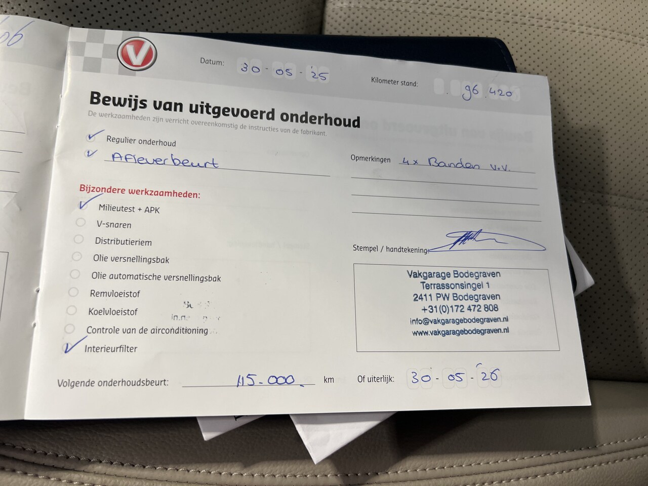 APK Bij aflevering