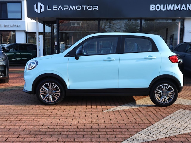 De Leapmotor T03 is een volledig elektrische vijfdeurs stadsauto die betaalbaarheid combineert met moderne technologie. Met een actieradius tot 395 km (WLTP-stad) en een 37,3 kWh batterij is hij ideaal voor dagelijks gebruik. De T03 biedt verrassend veel binnenruimte, een panoramisch zonnedak, geavanceerde veiligheidsvoorzieningen zoals LEAP Pilot met 6 airbags, en een 10,1" infotainmentscherm met 4G-connectiviteit
