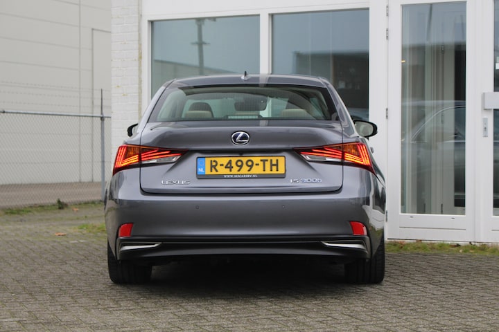 Zeer nette en luxe Lexus IS300h Hybride in de Luxury Line uitvoering van het bouwjaar 2018 met 134.340 aantoonbare kilometers! Uitgerust in de kleur Mercury Grey Metallic met Chateau bruin leder bekleding en Grijs Sapele houtinleg, een prachtige kleurstelling! Naast zijn mooie uitstraling is deze wagen uitgerust met vele luxe opties aangezien dit de Luxury Line betreft: Mark Levinson Premium Audio, achteruitrijcamera, stoelverwarming, stoelkoeling, stuurwielverwarming, Multi-led koplampen, Lane keep assist, adaptieve cruise control, zonnescherm achterruit (elektrisch) en nog meer! Daarnaast betreft dit ook een zuinige wagen dankzij de 2.5l 4-cilinder benzine/hybride motor die zorgt voor 223pk!