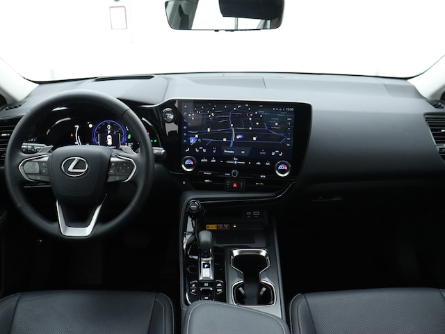 Hij is klaar voor nog jaren rijplezier, deze Lexus NX uit 2024. Er staat 7500 kilometer op de teller. Deze dealeronderhouden auto is van de eerste eigenaar. Elektrisch rijden of liever benzine? Kiezen hoeft niet, want de hybride motor maakt het allebei mogelijk. Dat noemen ze nou een ruimtelijk effect: het elektrisch bediende glazen panorama dak, dat net zo gemakkelijk open en dicht gaat als de elektrisch bedienbare achterklep. En ondertussen het ware luxegevoel van het lederen interieur. Hoe koud het buiten ook is, het verwarmbare stuurwiel en de verwarmbare voorstoelen brengen jouw handen, vingers en lichaam snel weer op temperatuur. Bij de rijke uitrusting horen ook 20 inch lichtmetalen velgen, Full LED koplampen, aluminium dakrailing, elektrisch inklapbare buitenspiegels, donker getint glas achter en in delen neerklapbare achterbank.