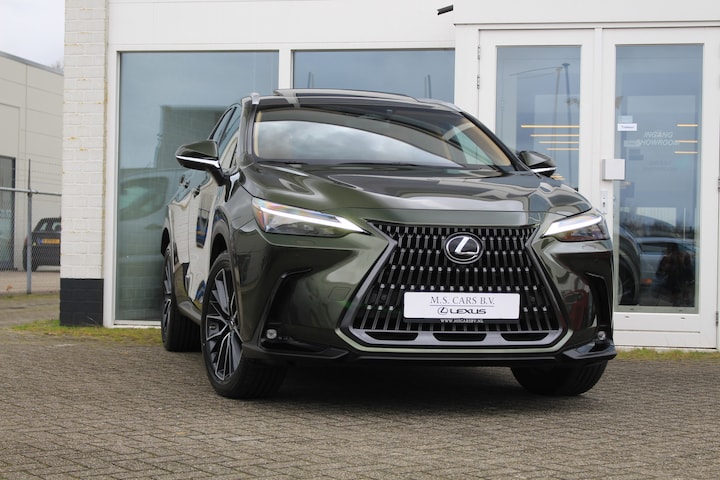 In zeer nette verkerende Lexus NX450h+ Plug-in Hybride in de President Line uitvoering van het bouwjaar 2022 met maar 52.028 aantoonbare kilometers! Prachtige wagen afkomstig van 1e eigenaar en uitgerust in een chique kleurstelling: Khaki Groen Metallic met Hazel bruin Smooth leder bekleding. Bent u op zoek naar een luxe, comfortabele SUV die zeer mooi oogt in een chique kleurstelling? Dan is dit wellicht de Lexus voor u! In de meest luxe uitvoering binnen het Lexus NX segment namelijk de President Line uitvoering. Deze NX is uitgerust met vele luxe opties o.a. Open dak, 360-graden camera, head-up display, draadloze Applecarplay, wireless phone charging, stuurwielverwarming, stoelverwarming, stoelventilatie, elektrisch verstelbare stoelen, de binnenspiegel die u ook kunt omzetten in een camera, sfeerverlichting in het interieur en nog meer! De Lexus NX plug-in heeft het beste van beide werelden, u heeft zowel een 2.5 hybride motor en een aanvullende elektrische accu waarmee u tot 70km volledig elektrisch kunt rijden! Daarnaast heeft deze luxe SUV een knop waarmee u rijdend op de hybride motor, uw elektrische accu mee kunt laden. Aangezien de plug-in nog een extra elektrische accu heeft is deze qua verbruik nog zuiniger dan de NX350h (de gewone hybride).