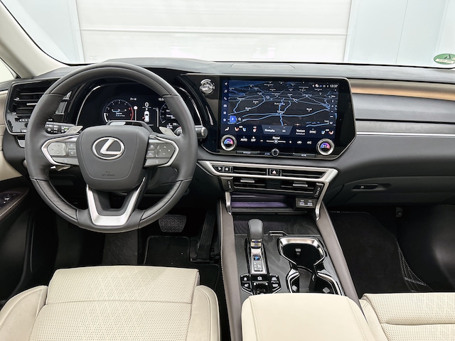 De Lexus RX is een goed voorbeeld van Japanse bouwkwaliteit. Dit is een exemplaar uit 2026, deze auto heeft 15000 kilometer gelopen. Deze dealeronderhouden auto is van de eerste eigenaar. Een krachtige viercilinder benzinemotor en een prettige automatische transmissie zorgen voor de aandrijving van deze stoere Lexus. Laat de zon maar schijnen door het elektrisch bediende glazen panorama dak en hou een handje over dankzij de elektrisch bedienbare achterklep. Niks vergeten? O ja toch: het lederen interieur moeten we zeker even noemen. Neem plaats op de comfortabele stoelen. Dankzij de elektrische bediening en het geheugen is het eenvoudig om hierin de beste zitpositie te vinden. Gewoon, omdat het kan. Deze Lexus RX heeft zelfs een verwarmde achterbank. Tot de uitrusting behoren ook 21 inch lichtmetalen velgen, LED-koplampen, adaptief dempingsysteem, warmtewerend glas, trailer assistent en dakspoiler.