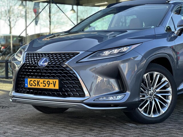 De Lexus RX is gebouwd met hoogwaardige techniek en maakt het rijden van lange ritten, maar ook korte stukjes, tot een feestje. Deze hybride auto beschikt over een verbrandingsmotor én een elektromotor. Daardoor rijdt de auto zeer comfortabel en is tegelijk zuinig in het verbruik. De klasse komt van het lederen interieur en het slimme gemak van de elektrisch bedienbare achterklep. Neem plaats op de comfortabele stoelen. Dankzij de elektrische bediening en het geheugen is het eenvoudig om hierin de beste zitpositie te vinden. Hoogstaande comfortfuncties zoals stoelverwarming, verwarmbare achterbank en een verwarmbaar stuur maken deze auto tot een uitzonderlijke keuze. U wordt in deze auto ook getrakteerd op 20 inch lichtmetalen velgen, LED koplampen, adaptief dempingsysteem, aluminium dakrailing, elektrisch inklapbare buitenspiegels en donker getint glas achter.