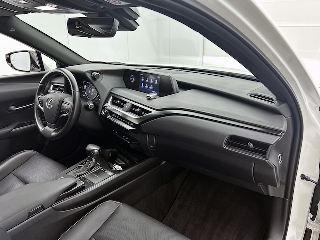 Bij stadsritten of op de lange afstand, deze Lexus UX bied jou ruimte, comfort en uitstekende rijeigenschappen. Het praktische en flexibele interieur biedt bovendien volop comfort voor alle inzittenden. De krachtige motor geeft deze Lexus uitstekende prestaties. Als we het over extra cachet hebben, moeten we zeker het lederen interieur noemen. Doe maar luxe! Neem plaats in de verwarmbare voorstoelen en voel de weldaad in koude dagen. Tot de uitrusting van deze Lexus behoren ook 17 inch lichtmetalen velgen, LED koplampen, warmtewerend glas, in delen neerklapbare achterbank, LED-achterlichten en snelheidsafhankelijke stuurbekrachtiging.