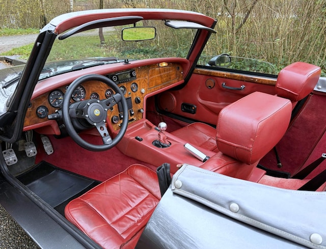 Het interieur is 100% origineel en uiteraard ook in een mooie staat. De stoelen werden in de fabriek bekleed met Connolly leer en de bekleding ziet er opvallend goed uit. Topkwaliteit leer dus, met gewoon de juiste patina na 37 jaar. Het dashboard is heel en alle instrumenten werken zoals het hoort. De electrisch bedienbare ramen gaan wat traag maar met een beetje beleid lukt dat prima. Dat schijnt elke Evante te hebben, maar je rijdt toch 99% van de tijd open.