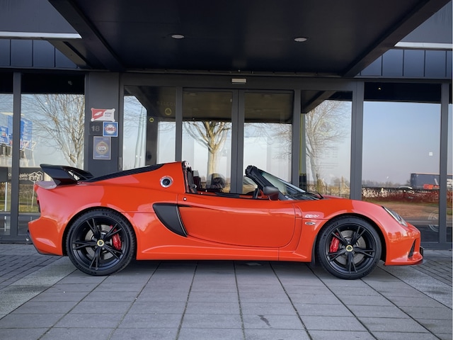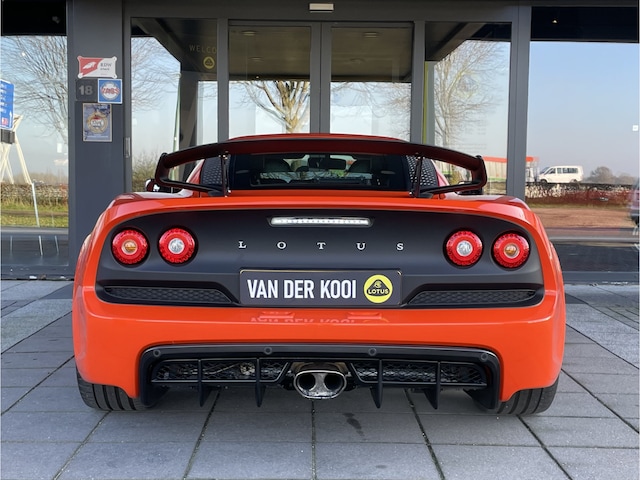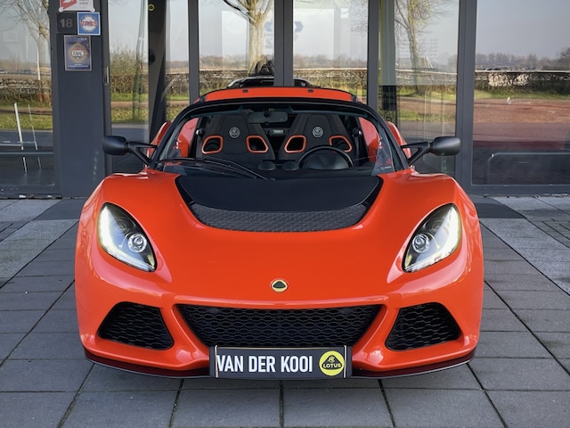 Echt in nieuwstaat verkerende Lotus Exige V6 350 Club Racer automaat met flippers aan het stuur, uitgevoerd in de prachtige kleur Oranje Metallic, met sportstoelen met bijpassende oranje stiksels en oranje accenten in de stoelen.