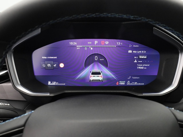 Het systeem controleert alle belangrijke functies en geeft die perfect weer via het digitale dashboard. Met de hulp van vier camera's, biedt de 360 graden camera op deze auto een panoramisch zicht, wat bijzonder nuttig is bij het parkeren en manoeuvreren. Met adaptive cruise control houdt deze auto automatisch afstand tot uw voorligger. De ingebouwde file assistent is een echte helper als het vaststaat onderweg. Het systeem meet ruimte tot de auto vóór u permanent en activeert zelfs de remmen als uw voorligger stopt. Deze Lynk & Co is voorzien van spraakbediening voor het full map navigatiesysteem en voor het audio-installatiesysteem met DAB-ontvangst. Maar u kunt ook de knoppen op het stuur gebruiken. Met achteropkomend verkeer waarschuwing, automatische airconditioning, draadloos opladen, regensensor, keyless entry en automatisch dimmende binnenspiegel is deze Lynk & Co helemaal compleet.